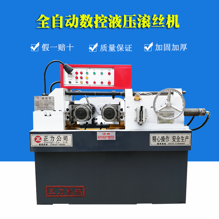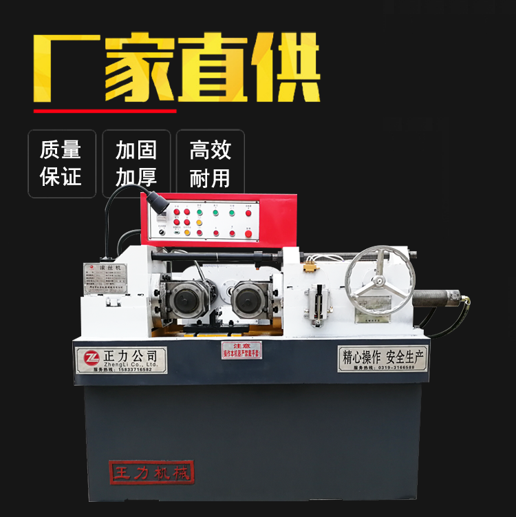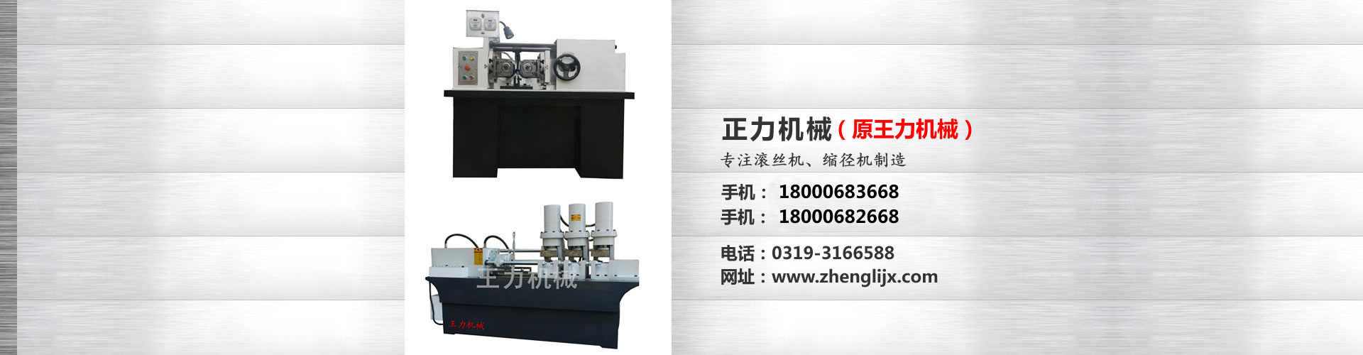 邢臺正力機(jī)械制造有限公司是國內(nèi)高端平價(jià)滾絲機(jī)專業(yè)化制造企業(yè)。 本公司是集研制、開發(fā) 、生產(chǎn)與銷售為一體的大型機(jī)械廠家,現(xiàn)主要產(chǎn)品有:滾絲機(jī),螺紋機(jī)床,縮經(jīng)機(jī),拔料機(jī),冷軋壓圓機(jī),雙組拉絲機(jī)等各種機(jī)械。地處燕趙大地南部邢臺市,是省級重合同、守信用、產(chǎn)品質(zhì)量穩(wěn)定型企業(yè),河北省消費(fèi)者協(xié)會信的過產(chǎn)品,產(chǎn)品暢銷全國各地,深受用戶的好評。          現(xiàn)擁有Z28-40、80、150、200、280、63型系列在五金建筑、汽摩配件、交通電力、標(biāo)準(zhǔn)件制作等高精度產(chǎn)品加工行業(yè)中,對高強(qiáng)度螺紋、網(wǎng)紋、花鍵、直斜紋、梯形螺紋、特殊軸類的滾軋加工有很強(qiáng)的優(yōu)越性,以高效、精密、快捷的工作原理深受廣大用戶的信賴。         專用的液壓縮徑機(jī)WL-25、36、48、60、型操作簡便,適用范圍廣,生產(chǎn)效率高,使金屬擠壓快速成型,節(jié)約了原材料,提高了金屬密度和抗拉強(qiáng)度         本公司長期供應(yīng)各種滾絲輪、縮徑機(jī)模具等各種配件。          產(chǎn)品暢銷河北,河南,山西,山東、遼寧、黑龍江、吉林、北京、天 津等省市自治區(qū)。我們不斷引進(jìn)國內(nèi)外先進(jìn)技術(shù),不斷優(yōu)化產(chǎn)品結(jié)構(gòu),精心鑄造產(chǎn)品質(zhì)量。王力品牌系列滾絲機(jī)、縮徑機(jī)、絲杠機(jī)是根據(jù)國內(nèi)的先進(jìn)機(jī)型加以改進(jìn),具有結(jié)構(gòu)設(shè)計(jì)科學(xué),結(jié)構(gòu)合理、能耗低、精度高、 使用壽命長等優(yōu)點(diǎn)。         我們正被更多的朋友接受,認(rèn)可,因?yàn)槲覀冇谜嬲\……